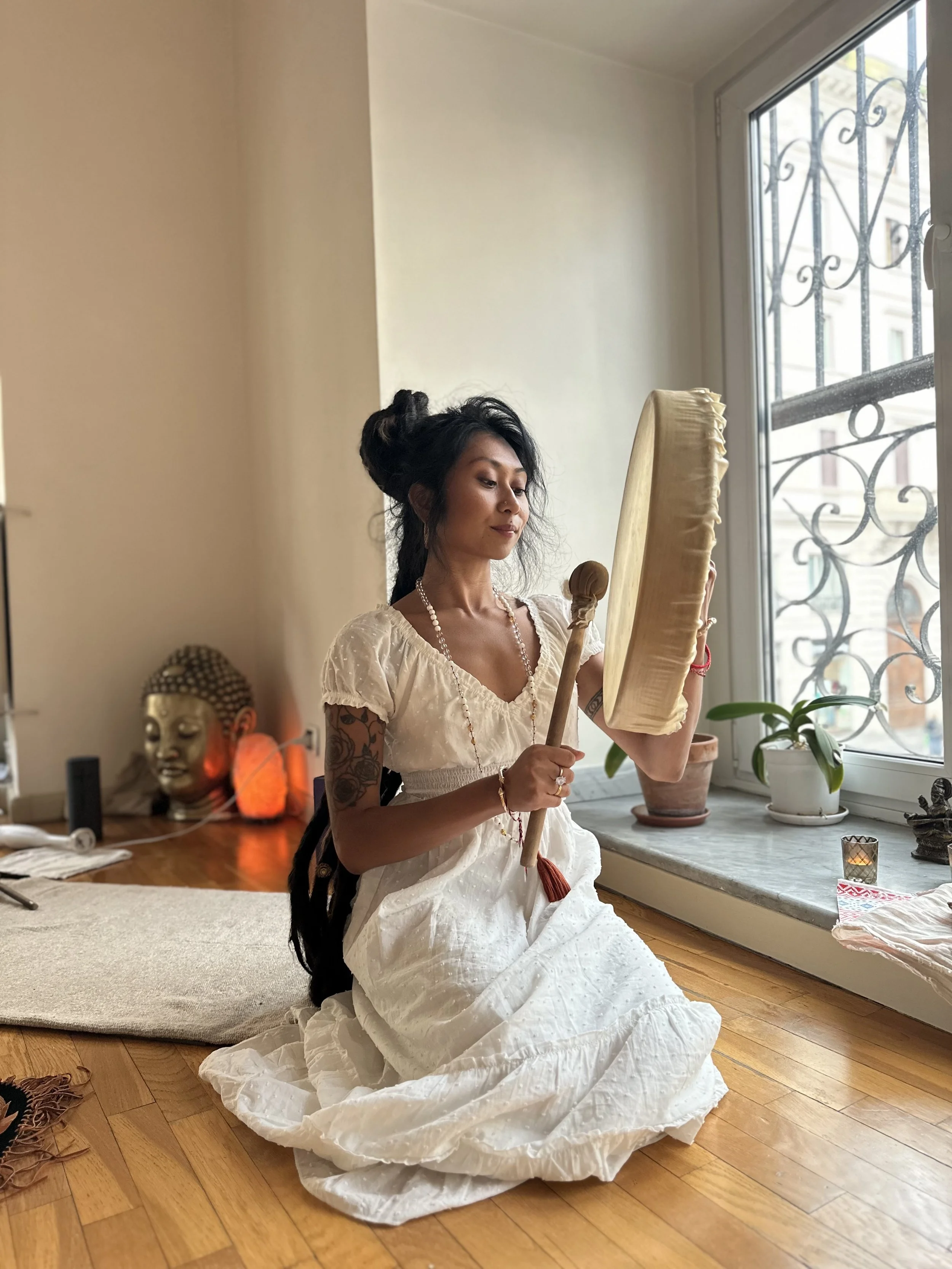 Adi and Molicka are space holders and medicine song carriers. They both use the power of their voice and shamanic drumming to bring to life the healing, peaceful, and prayer resonance.
